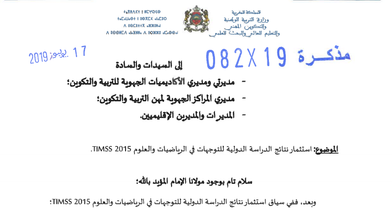 مذكرة في شأن استثمار نتائج الدراسة الدولية للتوجهات في الرياضيات والعلوم 2015 Timss