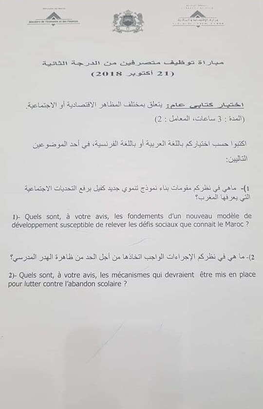 نماذج الامتحانات السابقة للمتصرفين من الدرجة الثانية لوزارة الاقتصاد والمالية جميع التخصصات 2019 Youtube