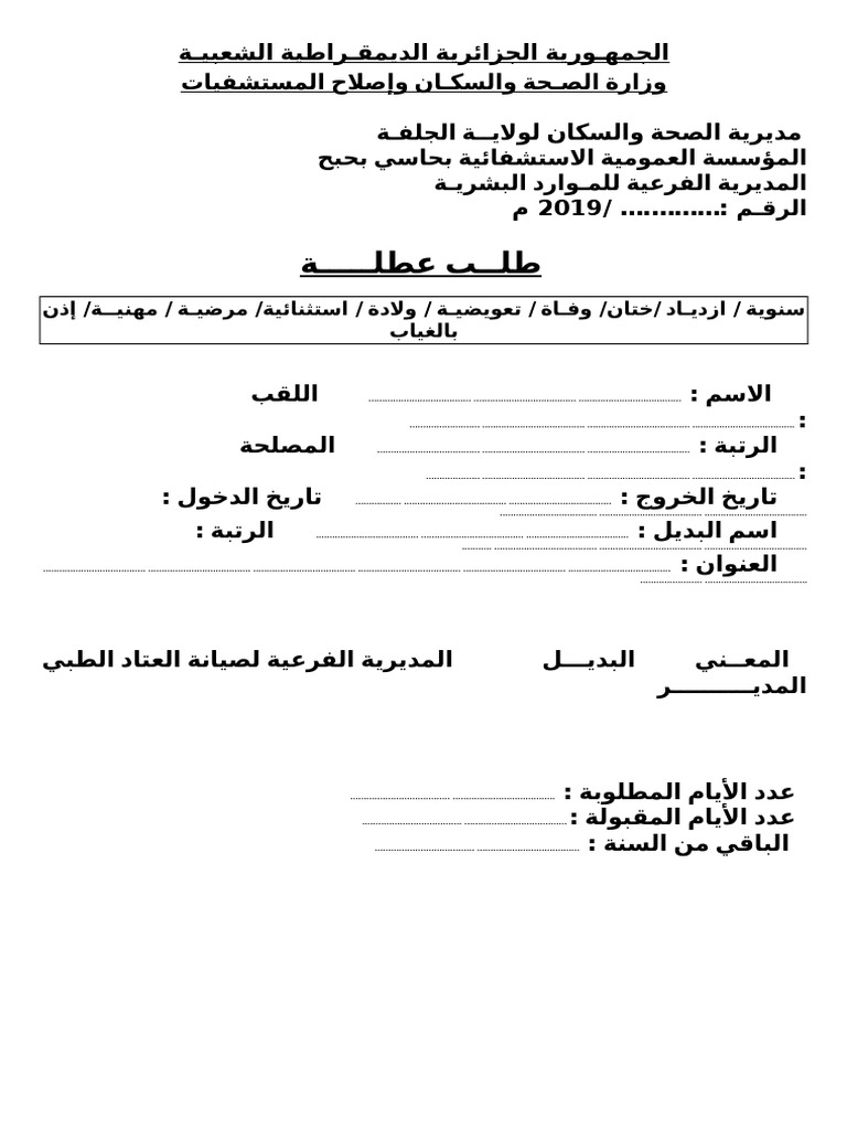 نموذج اجازة تعويضية وزارة الصحة