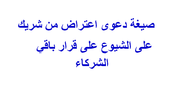 صيغة دعوى اعتراض من شريك على الشيوع على قرار باقي الشركاء